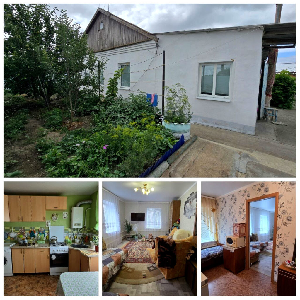 Дом из саманного кирпича, утепленный и заштукатурен, бетонный фундамент, крыша шиферная, пластиковые окна, 4-сотки земли