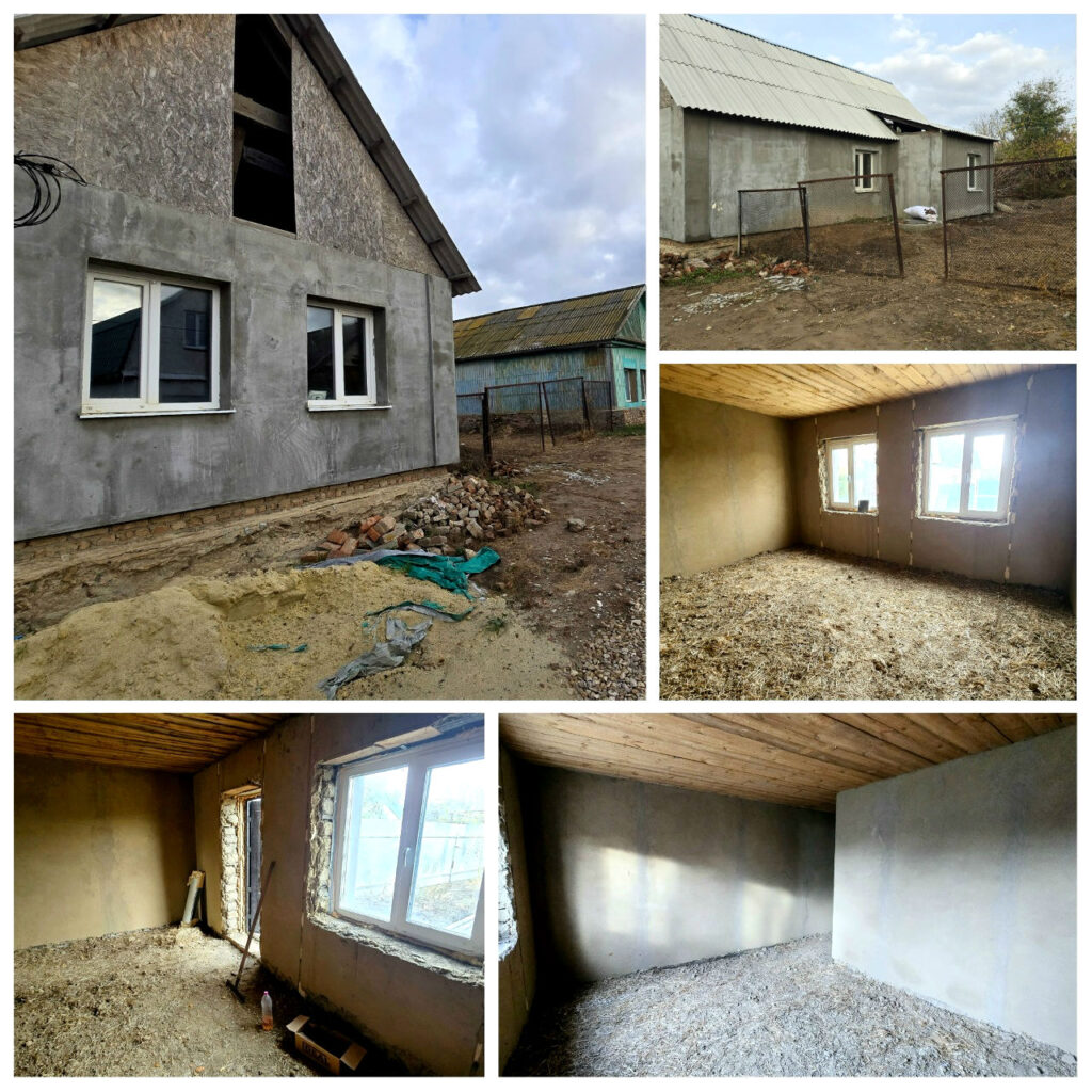 Дом из саманного кирпича, утепленный и заштукатурен, бетонный фундамент, крыша шиферная, пластиковые окна, 4-сотки земли